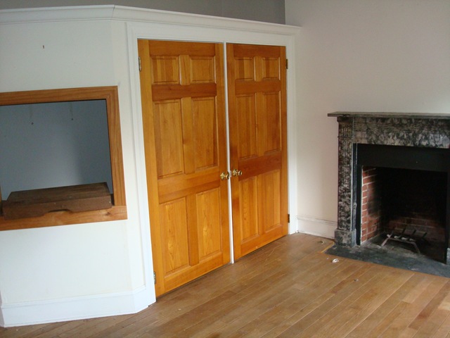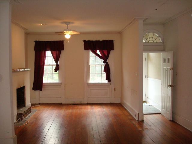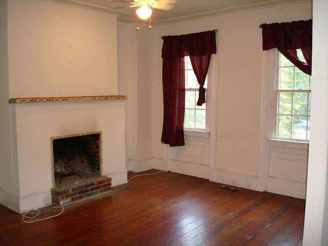 • They all work but need a little bit of sprucing up–in good shape considering the condition of the house. We’ve decided to close up the dining room one since it would have been blocked by the dining table. We’ll convert the living room one to gas with an insert and the others are still TBD.