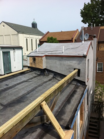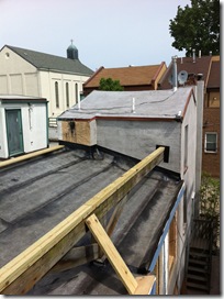 The skylight that was located under the deck (yes. skylight. under a deck… ?) was sealed off, a new roof was installed and the deck structure was put up.