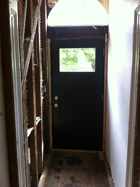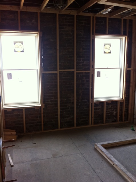 Interior shots of the front door, media room and guest bedroom windows. Very glad that the windows are in now instead of a later date.