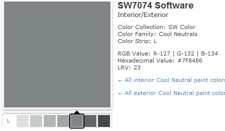 We loved the idea of a darker gray color on the walls in the main floor living area. It serves as a modern neutral which will allow the furniture and accessories to pop off of it.