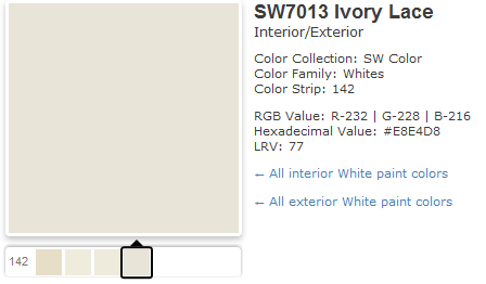 Simple and classic. Slightly aged feeling so that it doesn’t overpower the tiles, grout and planned accessories. Mirror and vanity light will nicely complement the feeling that this color provides.