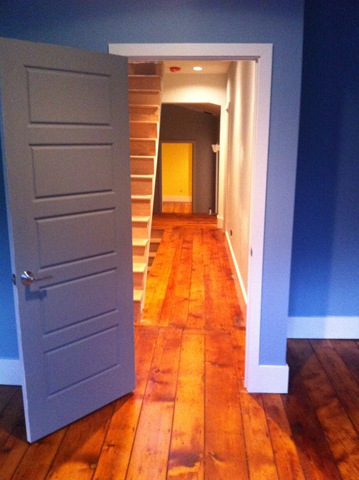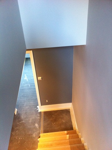 The lighter gray in the vestibule introduces the gray in the main floor and carries up throughout the common hallways. Colors within rooms peek through as you walk throughout the house.