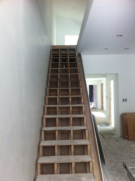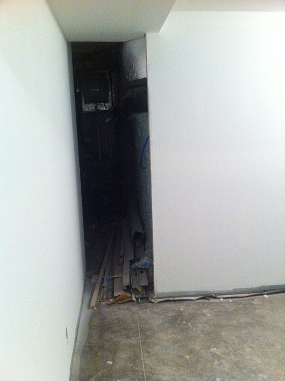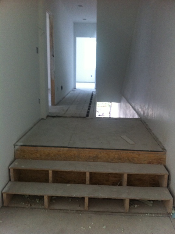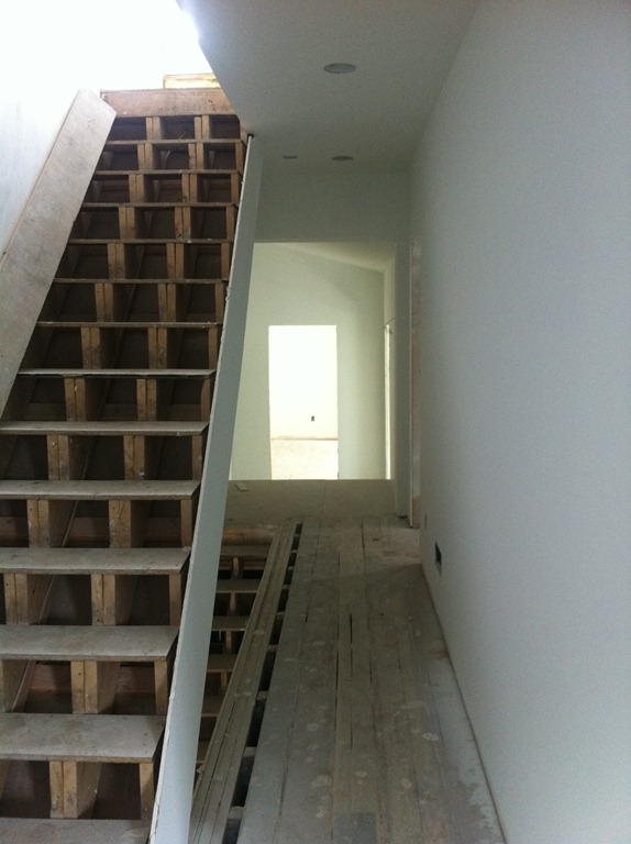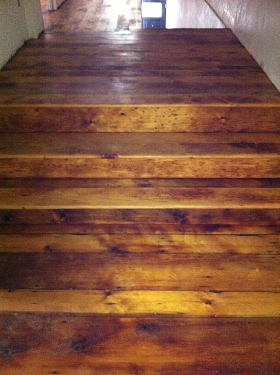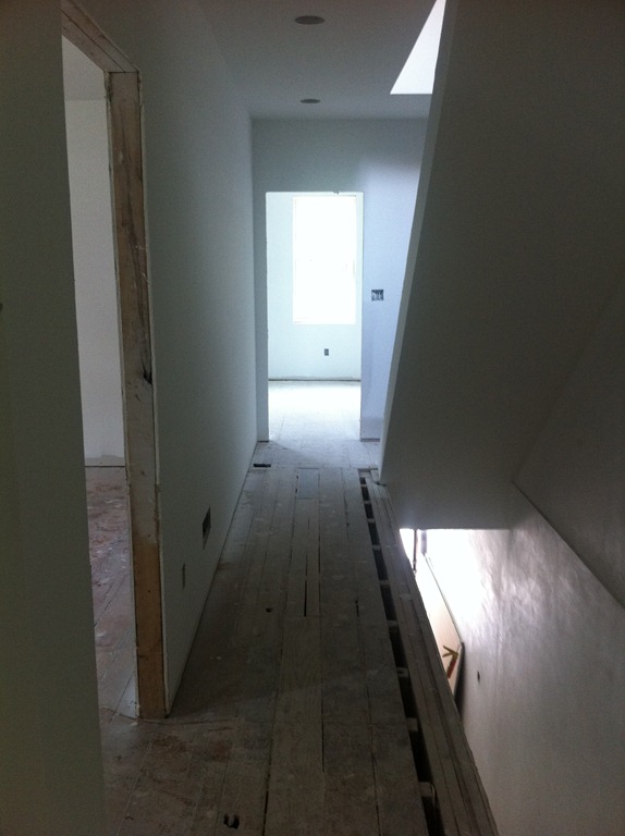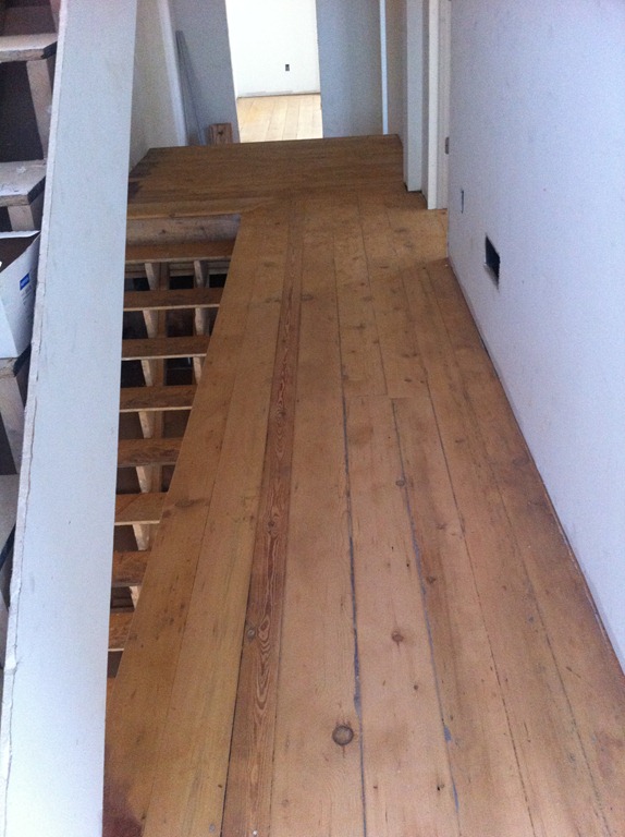 The new staircase location and new second floor landing area required some floorboard work. We were able to use the reclaimed floorboards from the third floor to create the edging along the staircase opening, repair the second floor hallway and fill in the landing, sunken area and few steps.